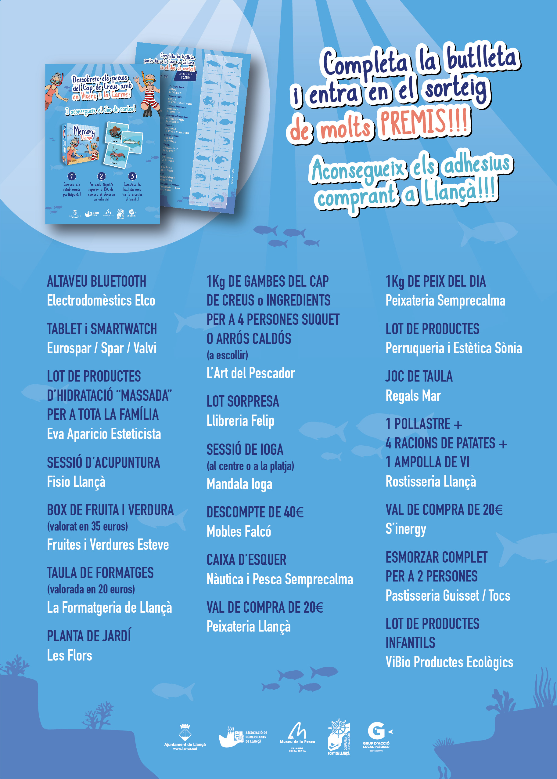Si aconsegueixen les 16 espècies, se’ls hi regalarà el joc de cartes “Memory Llançà” i entraran a formar part d’un sorteig de premis molt interessants oferts pels establiments participants.